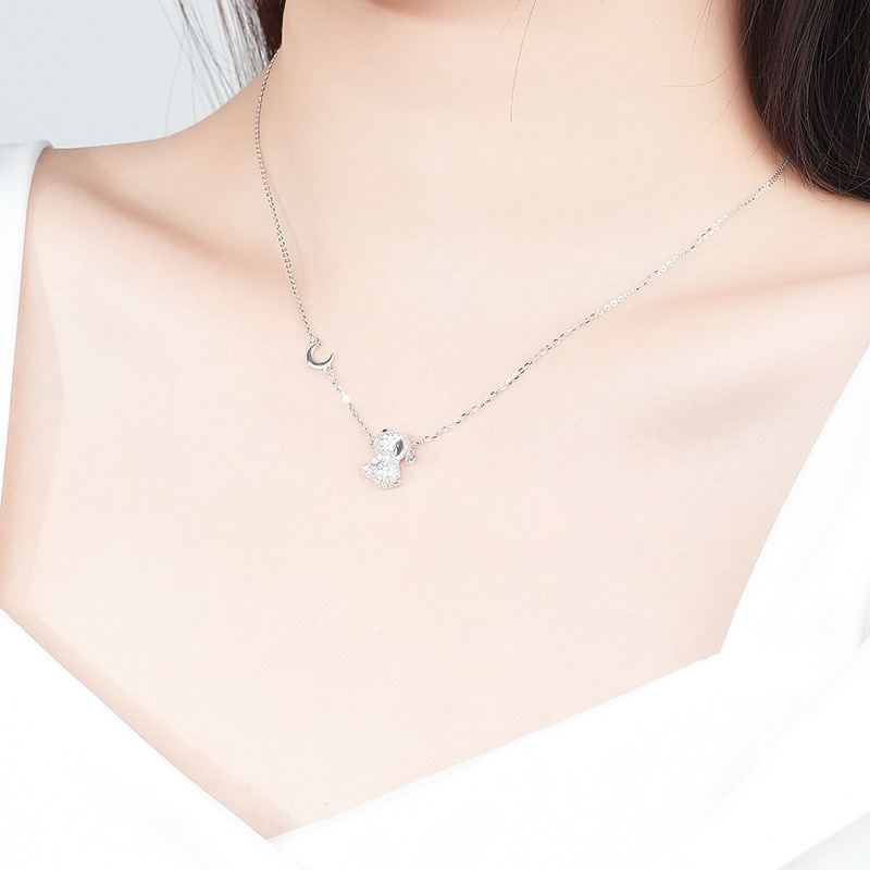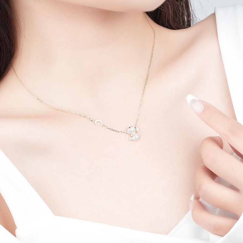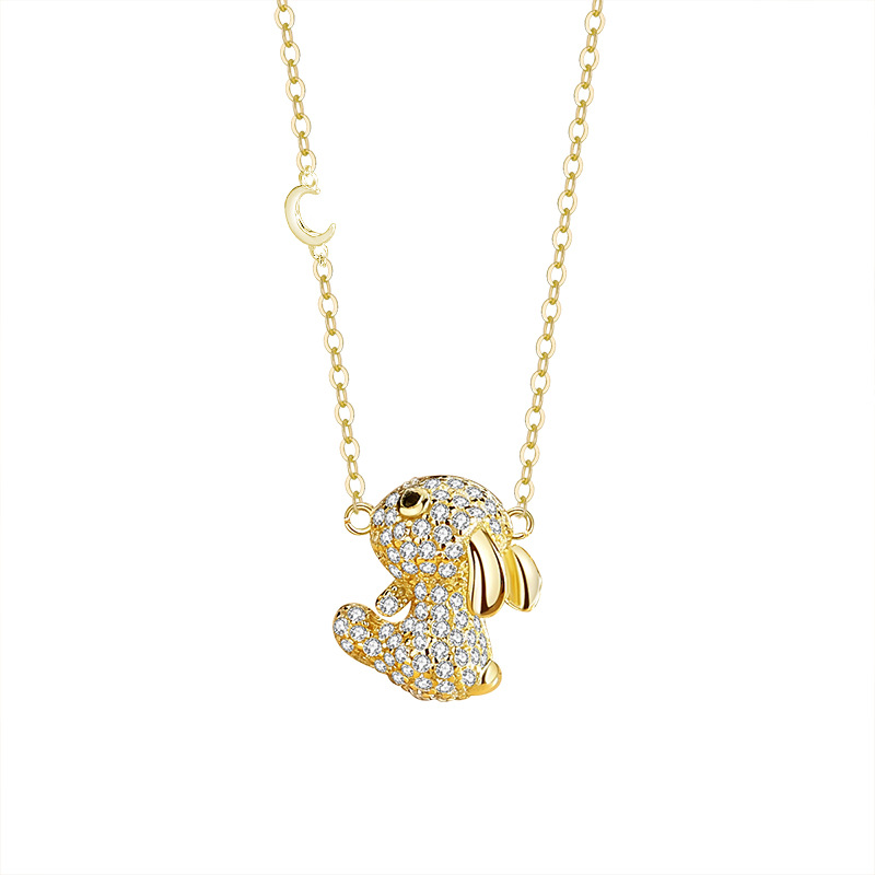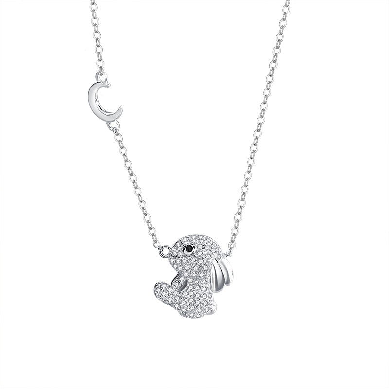 Micro-Set Full Diamond Rabbit Necklace S925 Sterling Silver Moon Rabbit Collarbone Chain